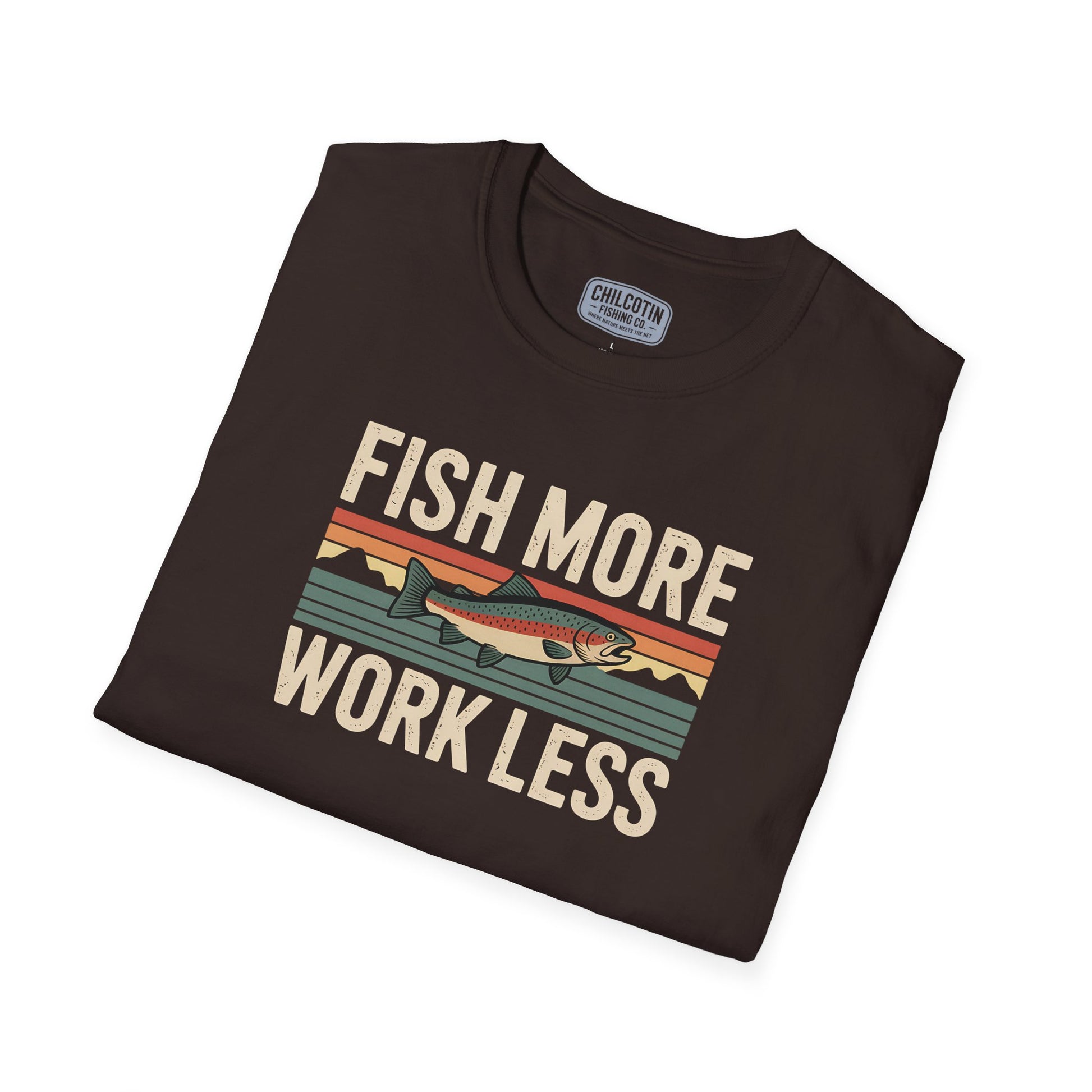 Fish More Work Less T-Shirt – Fishing Lifestyle Shirt for Anglers