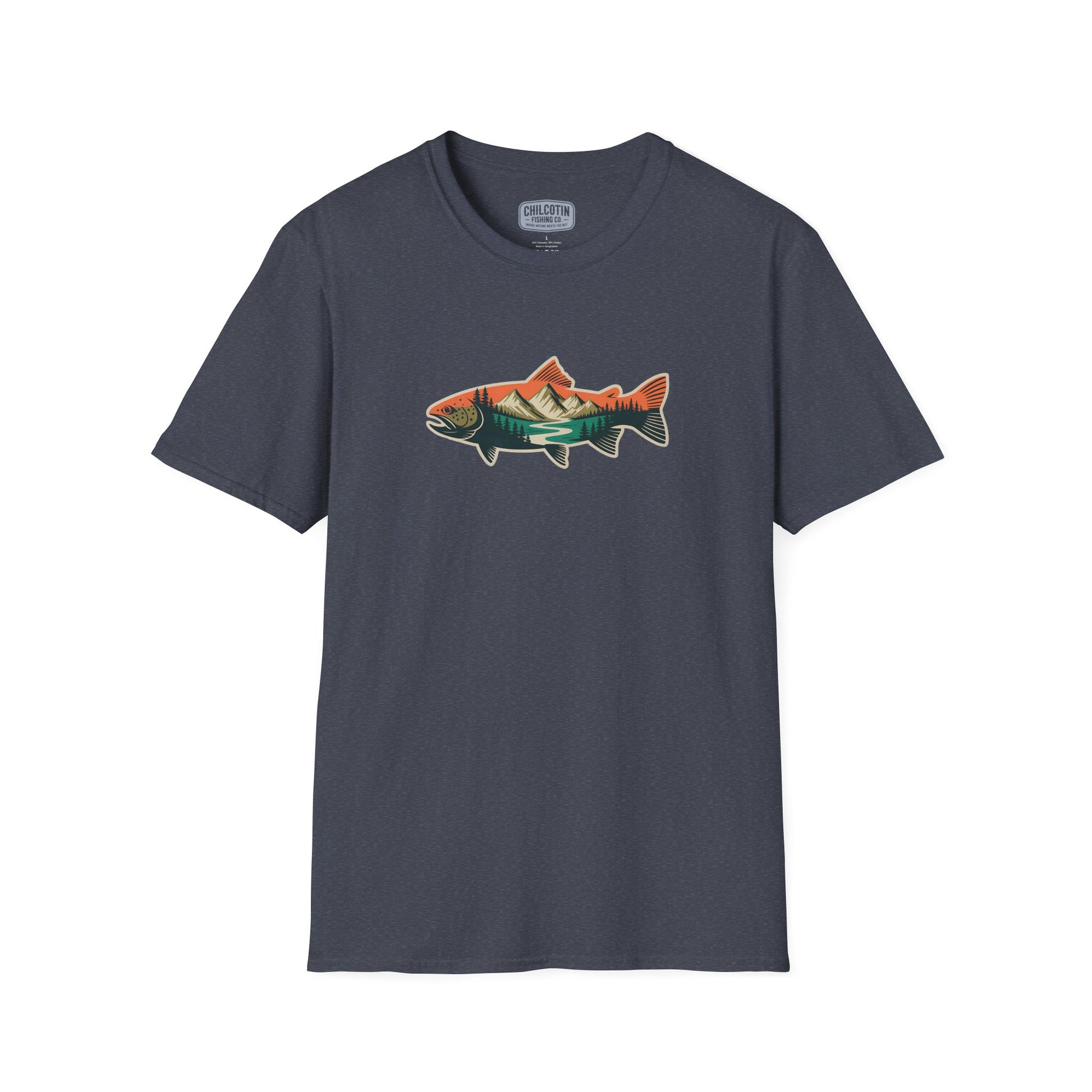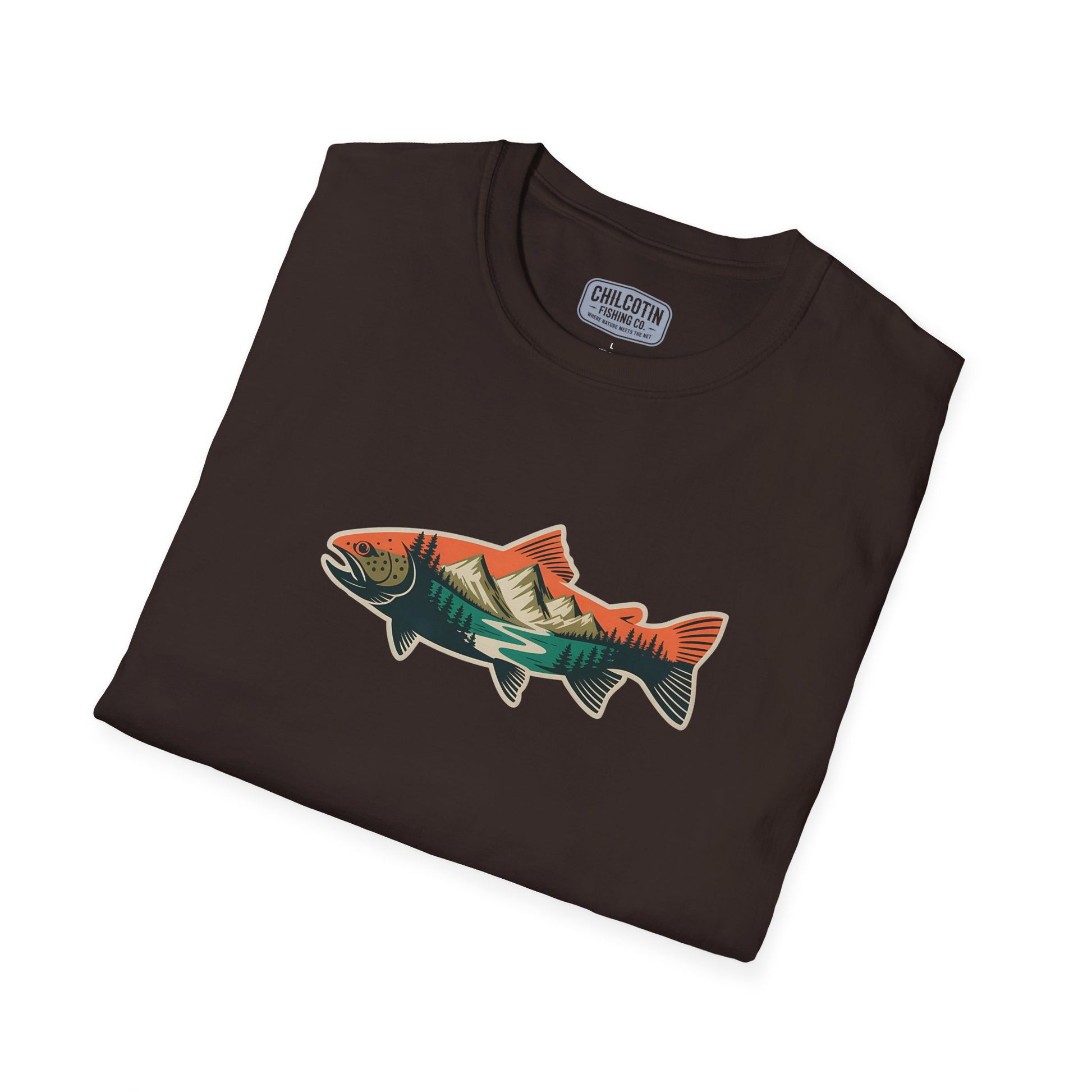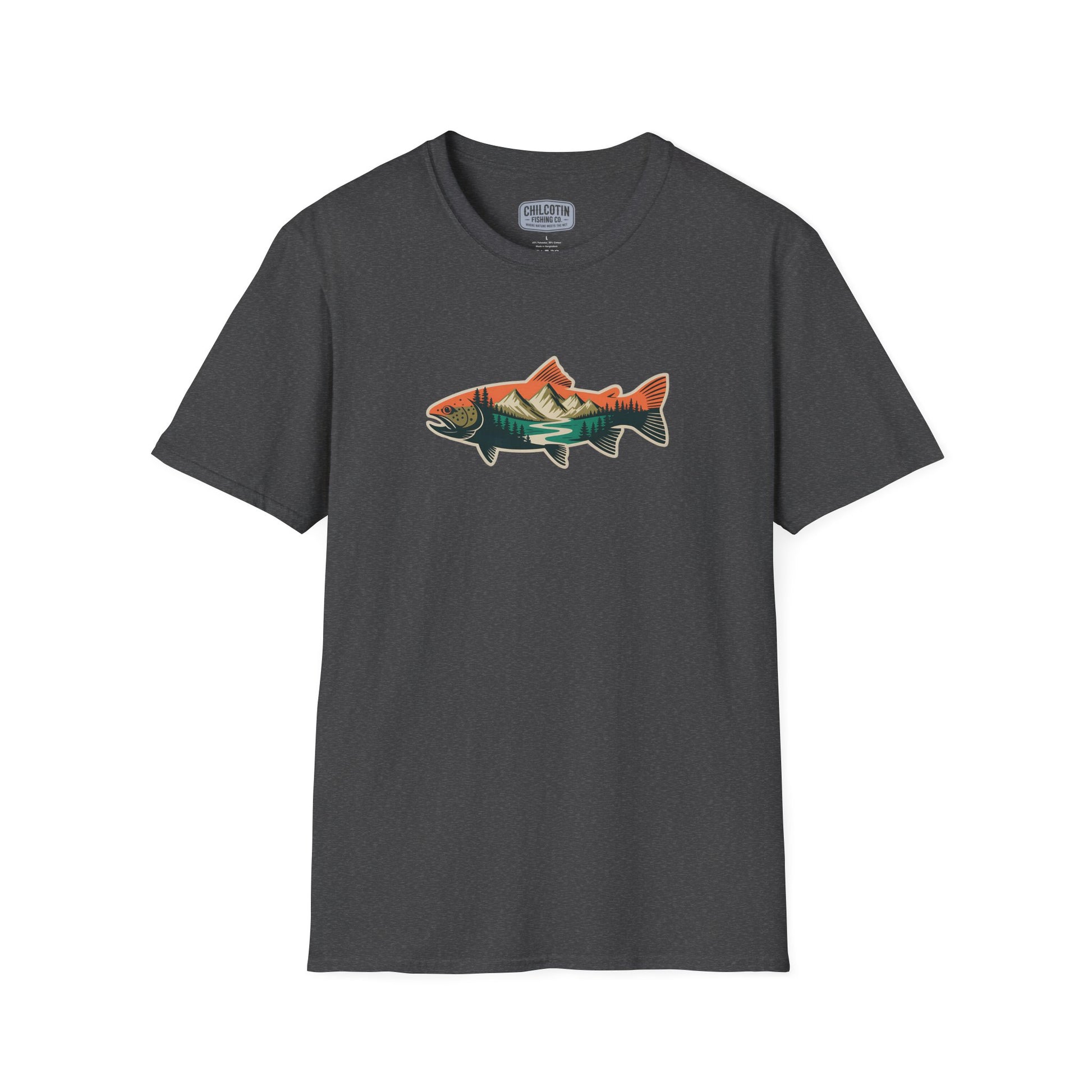 Trout Outline Mountain River T-Shirt – Outdoor Fishing Apparel